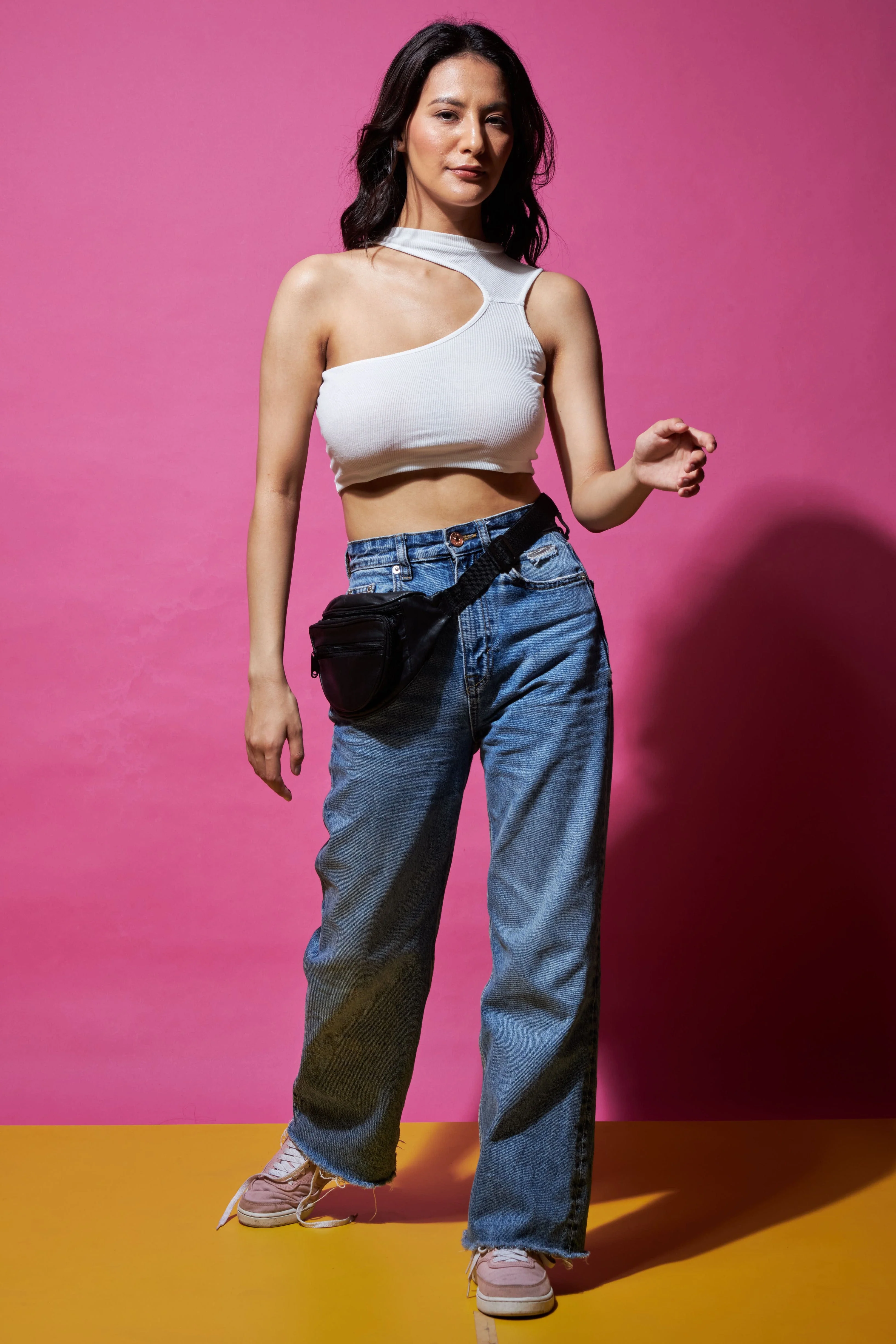 Out of the cut asymmetrical crop top
